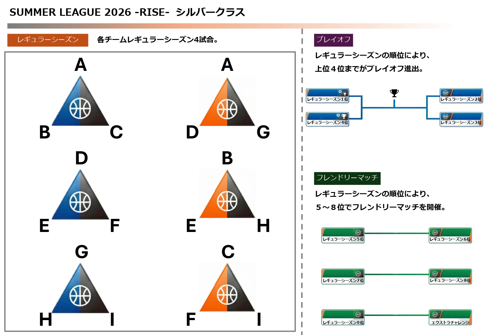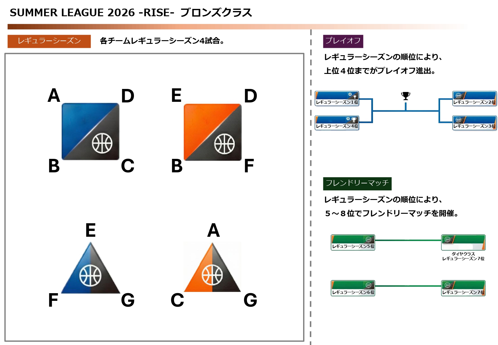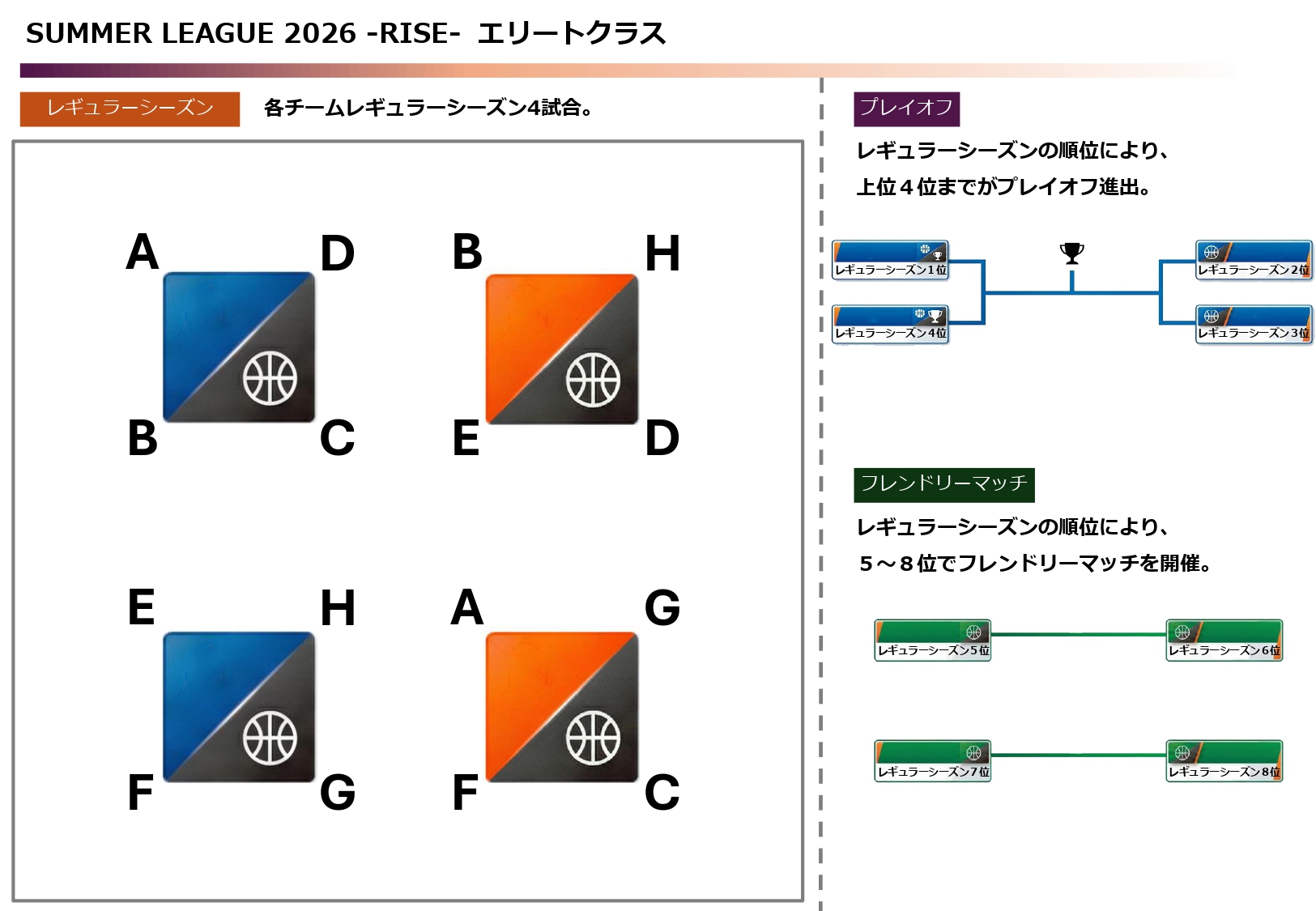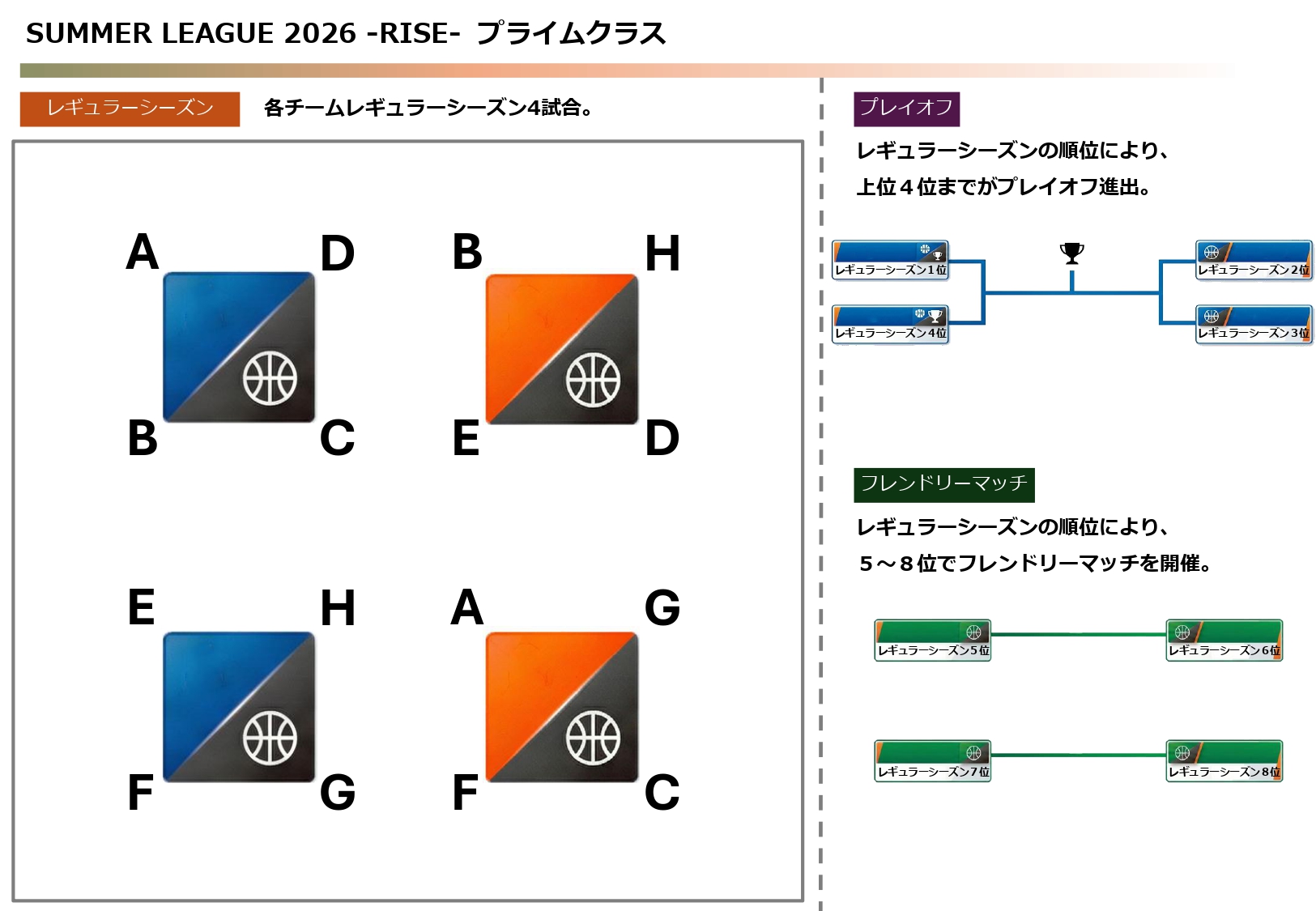 SUMMER LEAGUEでは、リーグ全体の競技性・公平性・安全性を保つため、クラス分けおよび対戦表の作成を以下の方法で行っております。