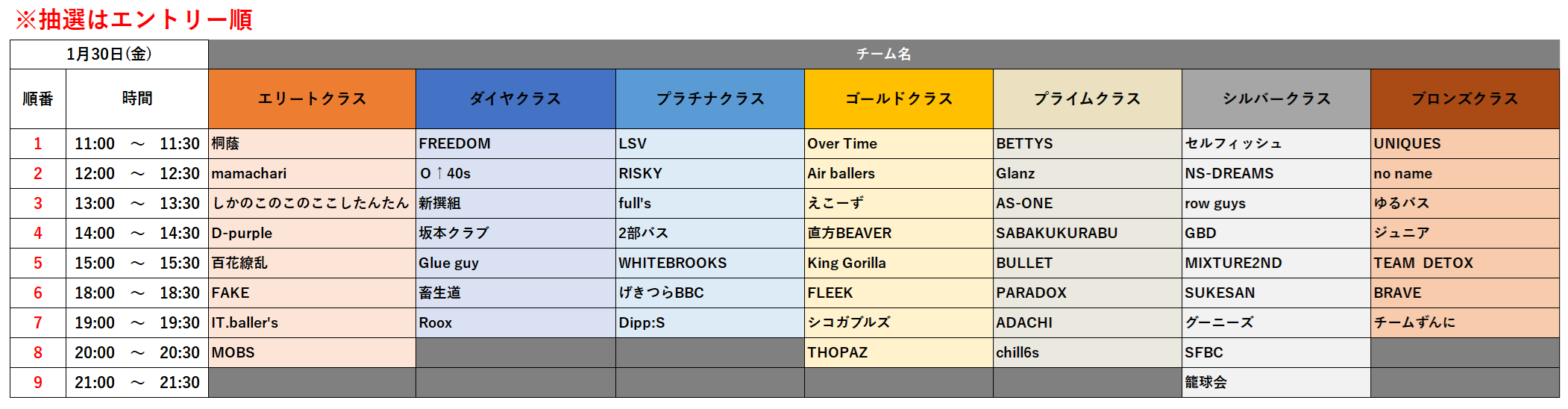 選択順はエントリー順にて行います。